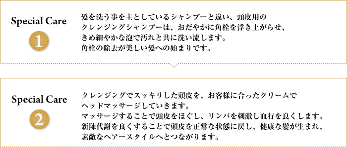 | (70分コース 頭皮の集中ケア+ヘアートリートメントも行います。至福の時間をお過ごしください。) | |